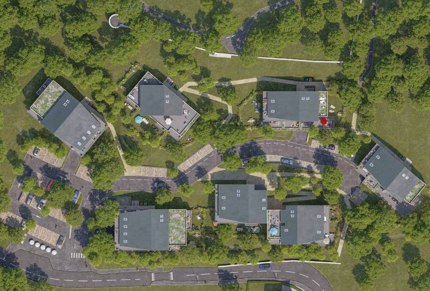Répartis dans 7 petits bâtiments élégants de 3 étages, les logements se distinguent par leur architecture soignée, l’utilisation de matériaux nobles et un cadre intimiste. Écoresponsable, la résidence intègre une chaudière collective au bois et un aménagement paysager riche et durable.