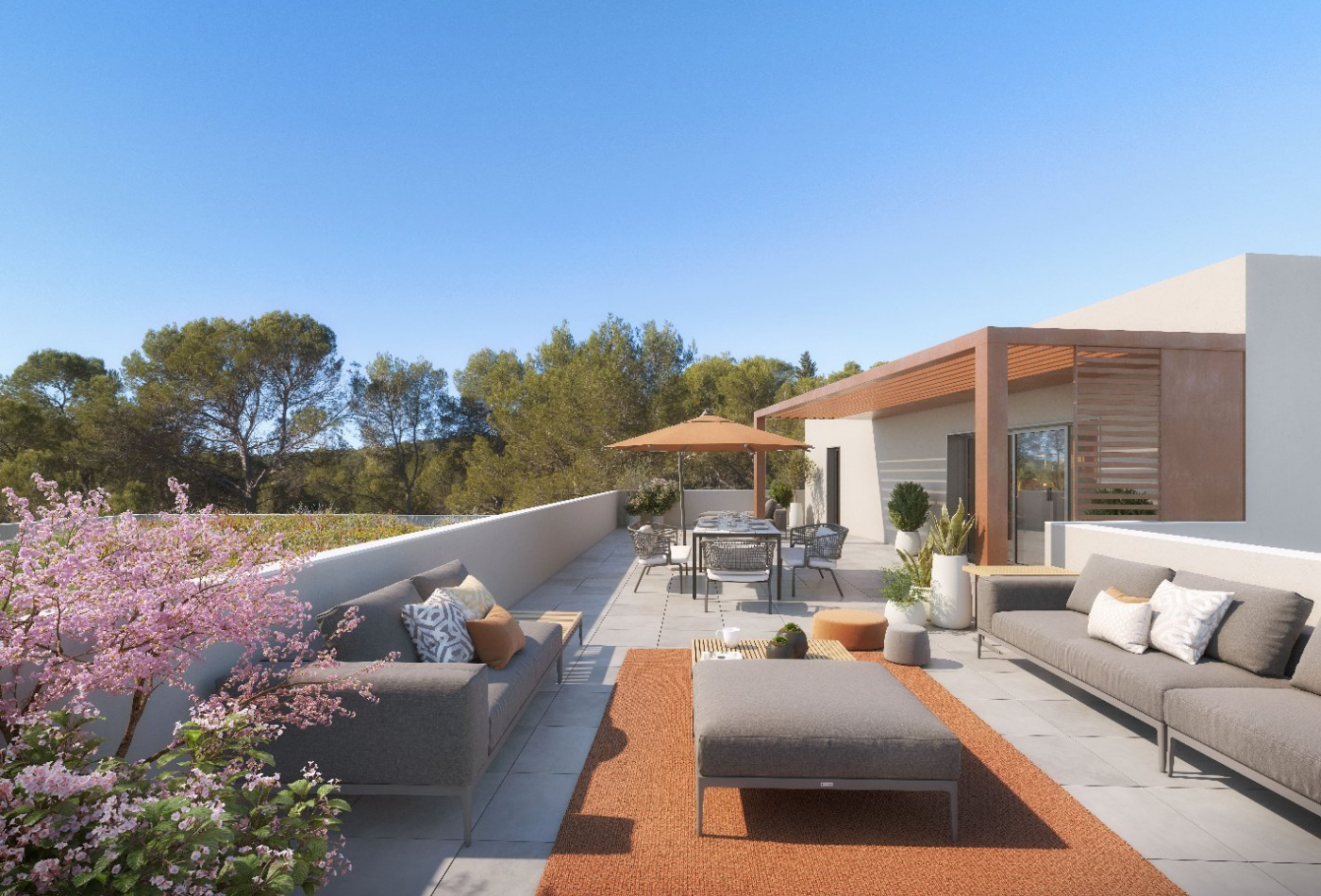 La résidence est un nouveau concept de résidence services lovée au cœur d'une pinède préservée. Pour s'intégrer parfaitement à l'environnement, ses façades prennent en compte les matériaux et colorimétries de la région, avec une finition en pierre de parement et des enduits de couleur beige. Proposant piscine, espaces paysagers à taille adulte et prestations haut de gamme, La résidence est composée de 2 bâtiments en R+2, offrant respectivement 23 et 28 logements allant du T2 au T5 avec terrasses ensoleillées et végétalisées.