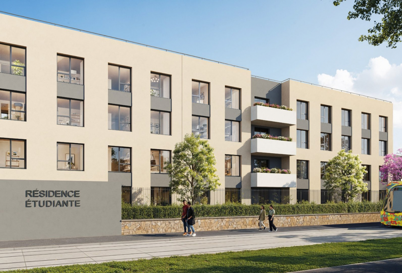 Une résidence entièrement équipée et sécurisée : entièrement close avec portail et digicode, vidéo surveillance, intendant sur place, accueil, laverie, locaux à vélos fermés, espace de coworking, terrasse partagée, potager. À seulement 50 m des commerces, des services et des restaurants, et à proximité immédiate des écoles les plus fréquentées. Au centre d’un quartier dynamique, très fréquenté par les étudiants, dans un cadre résidentiel et verdoyant. Arrêt de tramway en face de la résidence offrant une connexion rapide et directe vers le centre-ville.